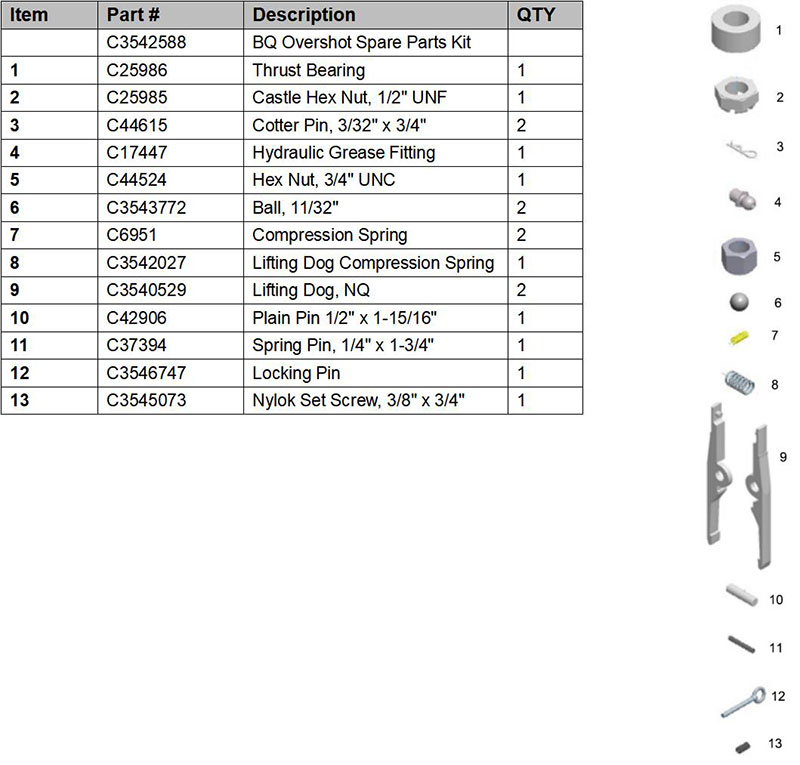 NQ overshot, NQ EZY-Lock overshot, NQ surface overshot.